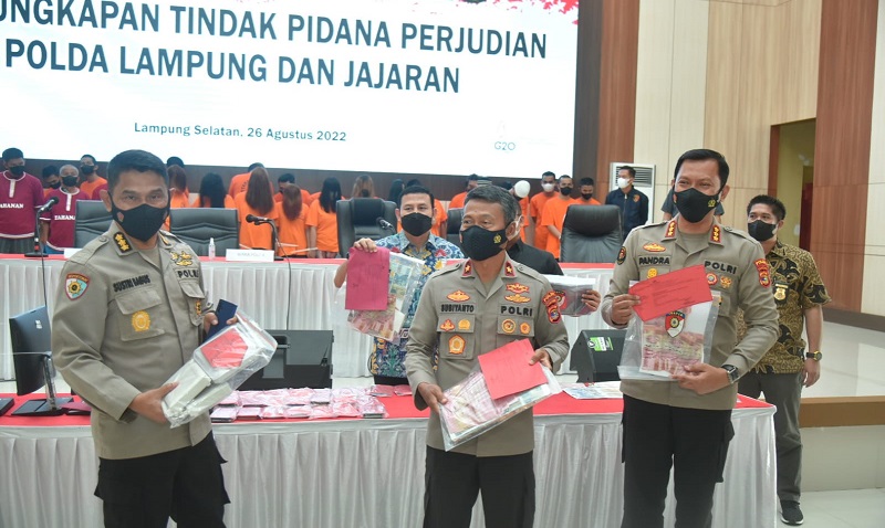 Wakapolda menjelaskan, sampai kurun waktu tahun 2022, Polda Lampung beserta Polres Jajaran melakukan penegakan hukum dalam kasus perjudian sebayak 96 kasus, total tersangka sebayak 220 orang, dan barang bukti Rp. 35.081 820.