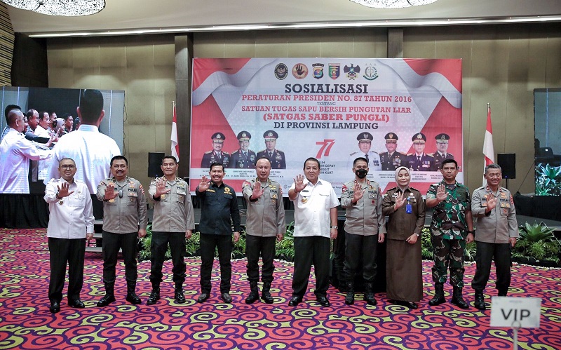 Hal tersebut ditegaskan Gubernur Arinal dalam Acara Sosialisasi Peraturan Presiden Nomor 87 Tahun 2016 tentang Satuan Tugas Sapu Bersih Pungutan Liar (Saber Pungli), di Ballroom Hotel Novotel, Bandar Lampung, Rabu (7/9/2022).