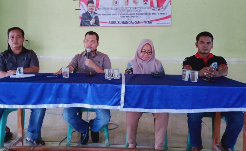 Newslampungterkini.com – Anggota DPRD Provinsi Lampung, Budi Yuhanda melaksanakan kegiatan reses untuk menyerap aspirasi masyarakat di Desa Aji Jaya, Kecamatan Simpang Pematang, Mesuji. (10/9/2022)
