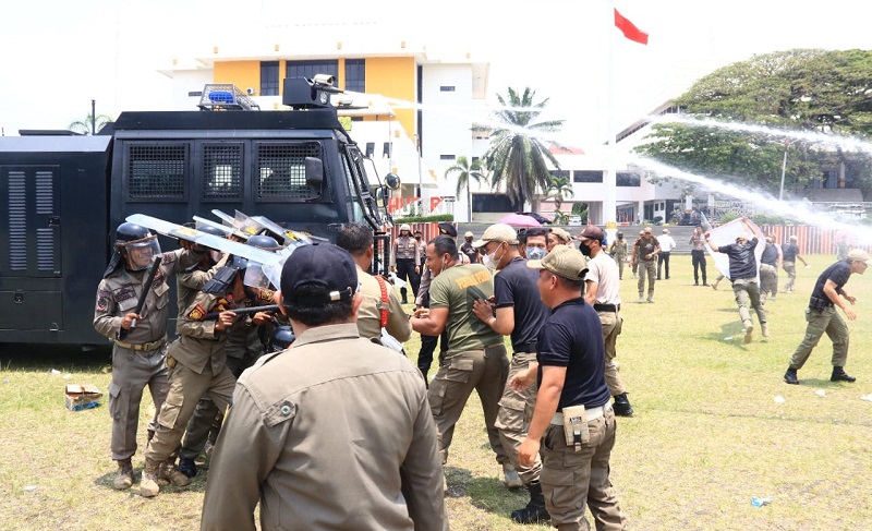 Sat Pol PP Provinsi Lampung Latihan Bersama Penanganan Unjuk Rasa