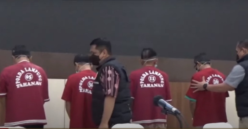Kelima orang tersangka yang ditangkap tersebut merupakan seorang pensiunan Polri berpangkat AKP berinisial SJO (80) warga Bandarlampung, Kades Gunung Agung Lampung Timur berinisial SYT (68) warga Lampung Timur, Kepala Satpol PP Lampung Timur berinisial SHN (58) warga Lampung Timur, yang diketahui pernah menjabat sebagai camat Sekampung Udik.