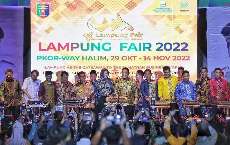 Lampung Fair 2022 ini hasil kolaborasi Pemerintah Provinsi Lampung bersama Asosiasi Pengusaha Indonesia (Apindo) Lampung. Saat pembukaan turut hadir Ketua Umum Apindo Hariyadi Sukamdani.