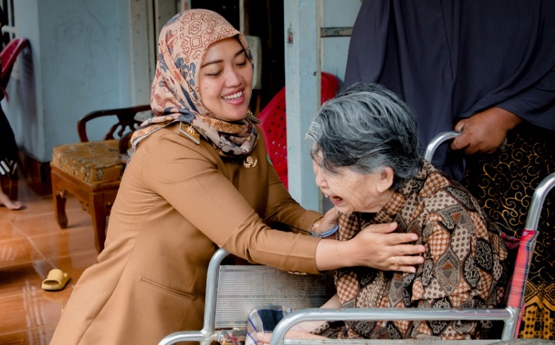 “Assalamualaikum, mbah ini ada kursi roda dari Bapak Gubernur dan Bapak Gubernur menitipkan salam,” ujar Wagub Nunik.