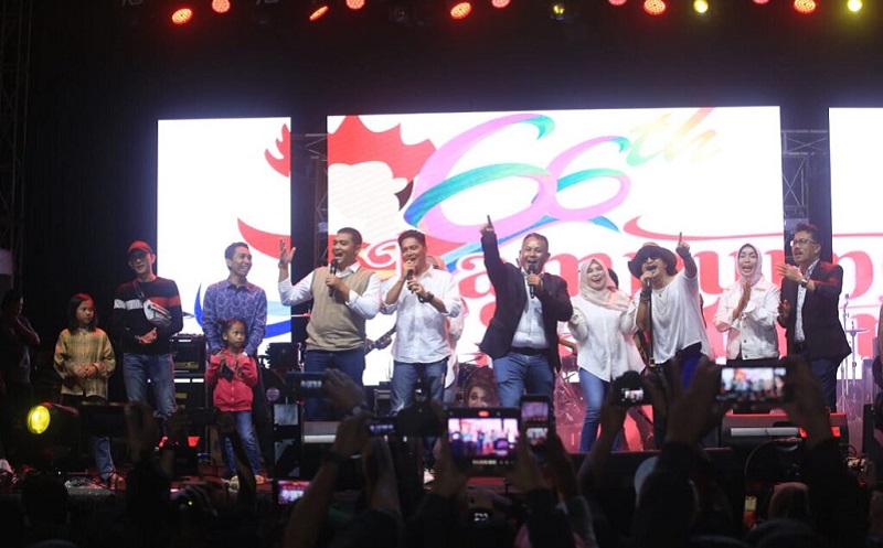 “Terimakasih untuk /Rif yang telah hadir menghibur masyarakat Kabupaten Lampung Selatan. Sekali lagi selamat ulang tahun Kabupaten Lampung Selatan yang ke-66 mari kita ciptakan suasana aman dan nyaman di Kabupaten kita tercinta ini,” sambut Nanang dari atas panggung.