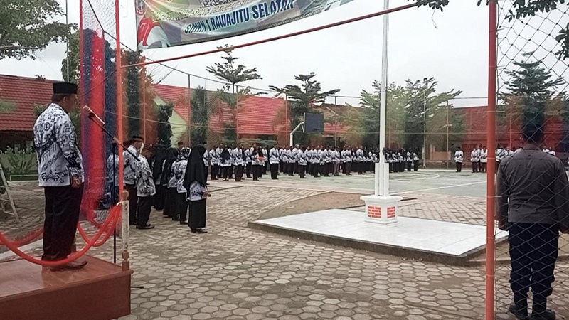 Bertindak sebagai pembina upacara camat Rawajitu Selatan,  Romli, dalam  amanahnya, menyampaikan bahwa hendaknya para guru mengikuti perkembangan dan perubahan zaman serta lebih mamantapkan profesionalitas diri dalam mendidik, agar kelak para siswa menjadi generasi yang handal dan pintar.