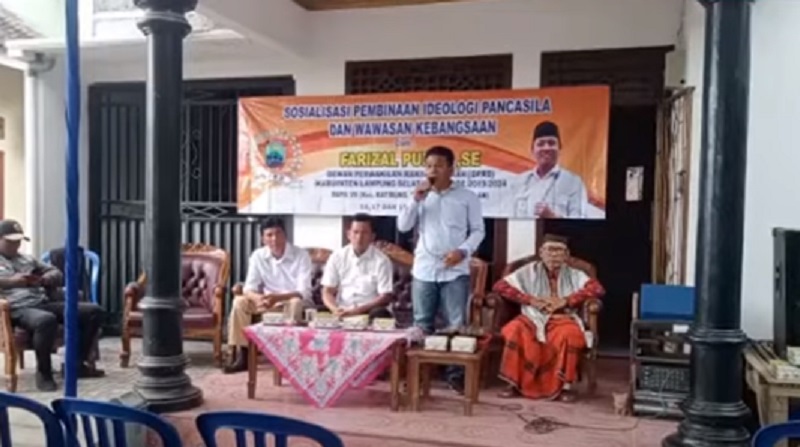 Newslampungterkini.com – Anggota DPRD Lampung Selatan, Farizal Purba SE menggelar sosialisasi Pembinaan Ideologi Pancasila dan Wawasan Kebangsaan (IPWK) kepada warga Dusun Sukadamai, Desa Babatan, Kecamatan Katibung, Lampung Selatan, pada Jumat (17/2/2023).