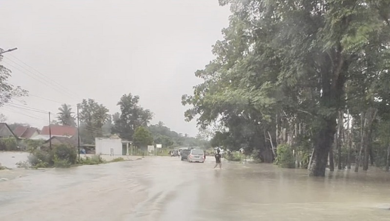 Banjir yang merendam jalan sepanjang 200 meter dengan kedalaman mencapai 1 meter tersebut, membuat aktivitas pelajar dan masyarakat yang melintas terganggu dan menyebabkan kacetan jalan.