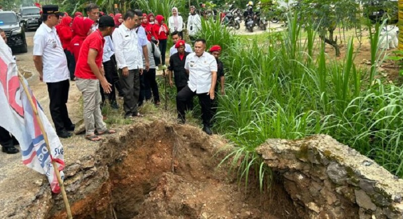 Jembatan Desa Sumberjaya Tergerus Longsor, Bupati Nanang Perintahkan Segera Perbaiki