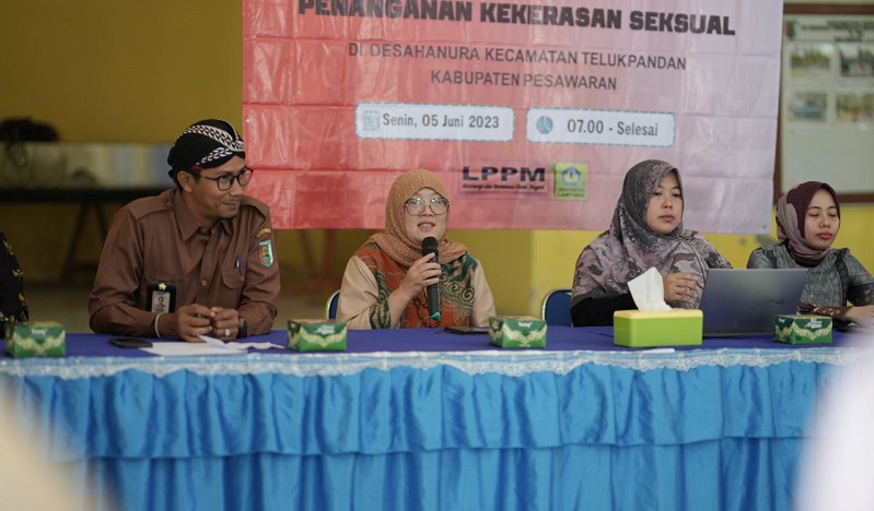 LPPM Unila bekerja sama dengan Satgas PPKS Unila menggelar sosialisasi Model Pencegahan dan Penanganan Kekerasan Seksual di balai desa setempat. Senin (5/6/2023)