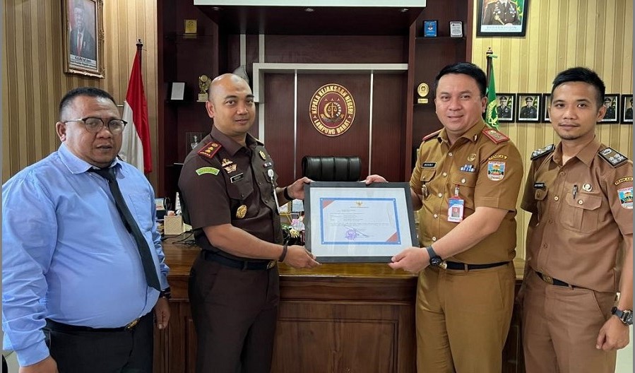 Newslampungterkini.com – Pemerintah Kabupaten Pesisir Barat (Pesibar), menyerahkan piagam penghargaan atas Bantuan Hukum Non Litigasi ke Kejaksaan Negeri (Kejari) Liwa, di ruang kerja Kajari Liwa, Selasa (18/7/2023).
