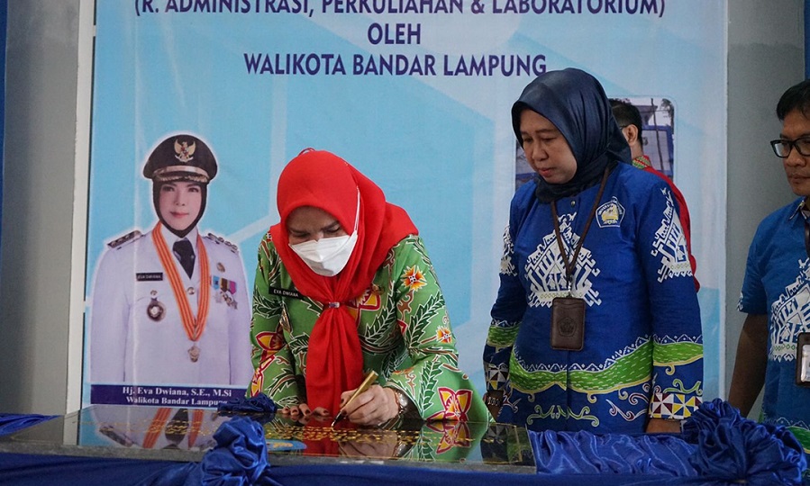 Newslampungterkini.com – Walikota Bandar Lampung Hj Eva Dwiana meresmikan Gedung Administrasi dan Perkuliahan Fakultas Teknik Universitas Lampung, Kamis ( 27/7/2023 ).