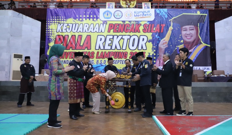Newslampungterkini.com – Rektor Universitas Lampung (Unila) Prof. Dr. Ir. Lusmeilia Afriani, D.E.A., IPM., ASEAN Eng., membuka kejuaraan Pencak Silat Piala Rektor Unila 2023 yang berlangsung di gedung serbaguna setempat, Jumat, (8/9/2023).