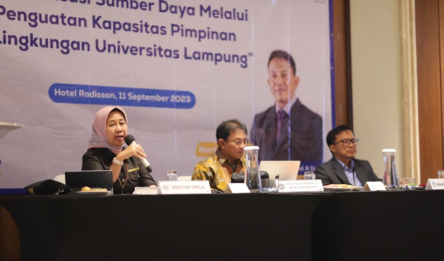 Newslampungterkini.com – Universitas Lampung (Unila) menggelar forum diskusi bertajuk “Optimalisasi Sumber Daya Melalui Penguatan Kapasitas Kepemimpinan di Lingkungan Universitas Lampung“, di Radisson Hotel, Senin (11/9/2023).