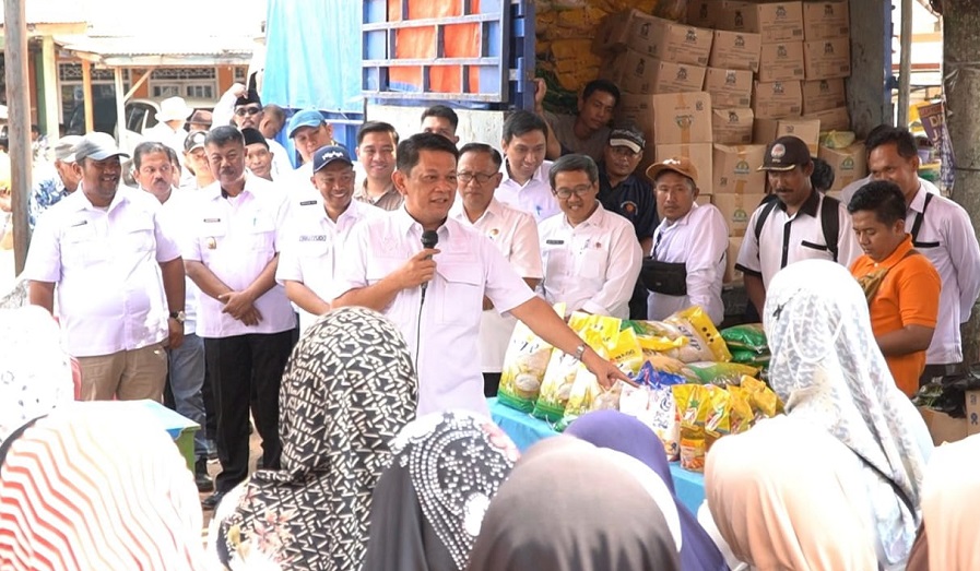 Sasaran pasar murah tersebut dilakukan Pj Bupati Firsada di Tiyuh Tunas Jaya, Kecamatan Gunung Agung.