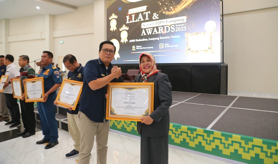 Penyerahan penghargaan secara langsung dilakukan Kepala Kanwil DJPb Provinsi Lampung Mohammad Dody Fachrudin kepada Kepala Biro Umum dan Keuangan (BUK) Ida Ropaida, S.E., M.M. Ia mewakili Wakil Rektor Bidang Umum dan Keuangan Unila yang berhalangan hadir.
