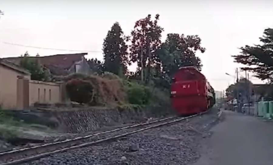 Namun setibanya kereta api di perlintasan berpalang pintu tersebut, korban tiba-tiba berlari ke arah kereta api dan langsung menabrakan badannya ke gerbong.