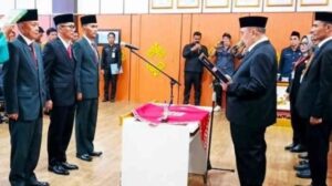 Pelantikan dan pengucapan sumpah pimpinan DPRD tesebut dipimpin langsung oleh Ketua Pengadilan Negeri Tanggamus Eva Susiana, SH, MH, berdasarkan surat keputusan Gubernur Lampung nomor G/481/B.01/HK/2024, yang dilaksanakan di ruang sidang utama kantor DPRD setempat, Rabu (16/10/2024)