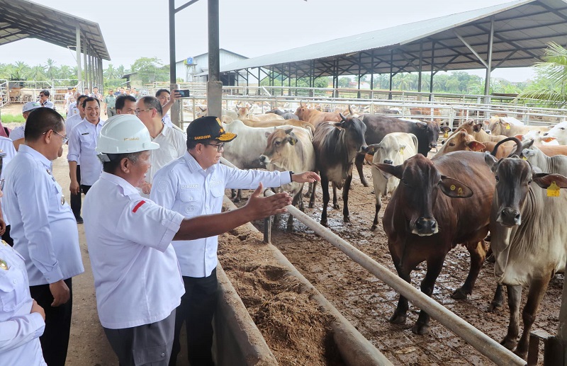 Pada Kunjungannya di PT. Nakau, Pj. Gubernur meninjau langsung metode pemeliharaan sapi yang terintegrasi dengan perkebunan sawit, dimana dengan metode ini, Sapi-sapi dilepaskan di perkebunan kelapa sawit yang telah dimodifikasi sedemikian rupa.