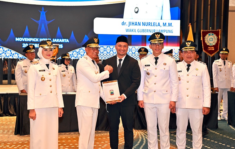 Prosesi sertijab yang dipimpin langsung Gubernur Lampung, Rahmat Mirzani Djausal didampingi Wakil Gubernur Lampung Jihan Nurlela ditandai penandatanganan berita acara serah terima jabatan yang berlangsung di Hotel Movenpick, Jakarta Pusat.
