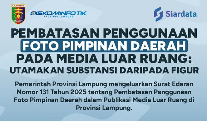 Newslampungterkini.comPemerintah Provinsi Lampung menerapkan aturan pembatasan penggunaan foto Gubernur, Wakil Gubernur, dan Sekretaris Daerah (Sekda) dalam publikasi media luar ruang. Rabu (6/7/2025)