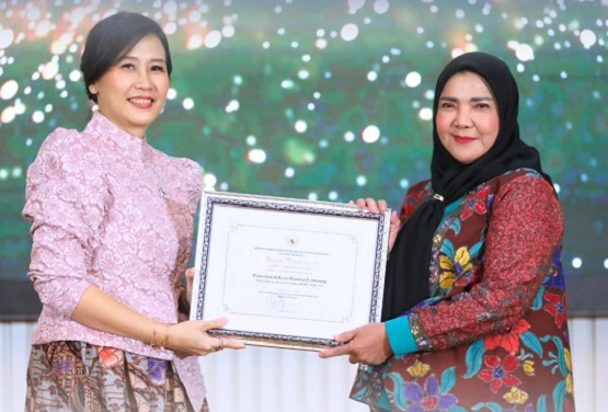 Penyerahan dilakukan oleh  Menteri Pemberdayaan Perempuan dan Perlindungan Anak Republik Indonesia, Arifah Fauzi kepada Walikota Bandar Lampung Eva Dwiana di Auditorium KH. M Rasjidi, Kementerian Agama RI Jakarta Pusat.
