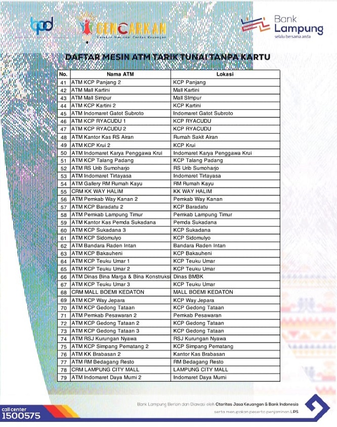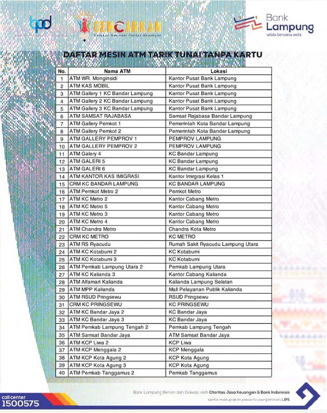 Berita Terkini Ekbis Lokasi Mesin ATM Tarik Tunai Bank Lampung Tanpa Kartu 26 Agustus 2025 News Lampung Terkini Tags: Bank Lampung Post navigation Previous Kolaborasi KIM, Pemerintah dan Desa Jadi Kunci Akselerasi Transformasi DigitalNext 117 Mahasiswa Kedokteran Unila Diambil Sumpah