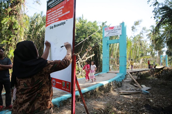 “Mulai hari ini jembatan tersebut menjadi tanggung jawab warga untuk bersama-sama memelihara dan merawatnya karena jembatan tersebut merupakan hasil dari gotong royong warga dan kini menjadi milik bersama” ungkap Hery Maryanto mewakili Relawan.