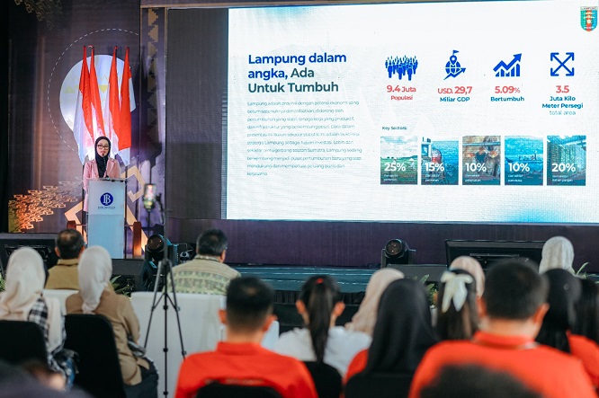 Hal itu disampaikan Wagub Jihan saat menjadi keynote speaker pada Talkshow dan Bedah Buku Inspiratif bertema “Peran Pemerintah dalam Mendorong Pengembangan Usaha Mikro Kecil dan Menengah untuk Naik Kelas dan Berdaya Saing”, yang digelar di Lampung City Mall, Jumat (3/10/2025).