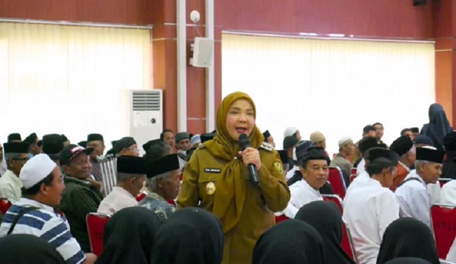 Newslampungterkini.com – Walikota Bandar Lampung Hj. Eva Dwiana melepas 530 jemaah umrah tahap kedua tahun 2025 di Aula Semergou, Senin (13/10/2025).
