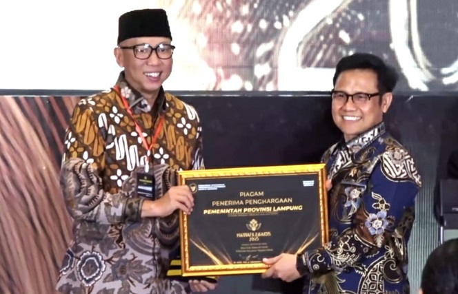 Newslampungterkini.com – Pemerintah Provinsi Lampung meraih penghargaan dari Kementerian Koordinator Pemberdayaan Masyarakat Republik Indonesia. Penghargaan diserahkan langsung oleh Menko Pemberdayaan Masyarakat A. Muhaimin Iskandar kepada Gubernur Lampung, Rahmat Mirzani Djausal dalam acara Mandaya Awards 2025 yang digelar di Ballroom Plaza Jamsostek, Jakarta, Kamis (16/10/2025).
