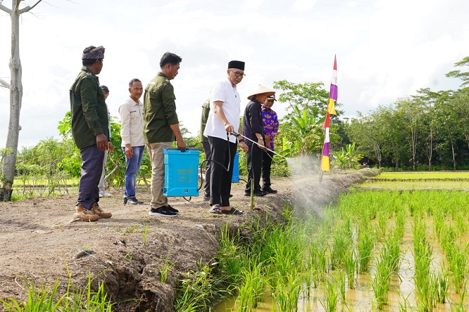 Dalam kesempatan tersebut, Gubernur Mirza juga mencoba menggunakan langsung POC dengan menyemprotkan ke tanaman padi bersama masyarakat yang tergabung pada Kelompok Tani Karya Mandiri.