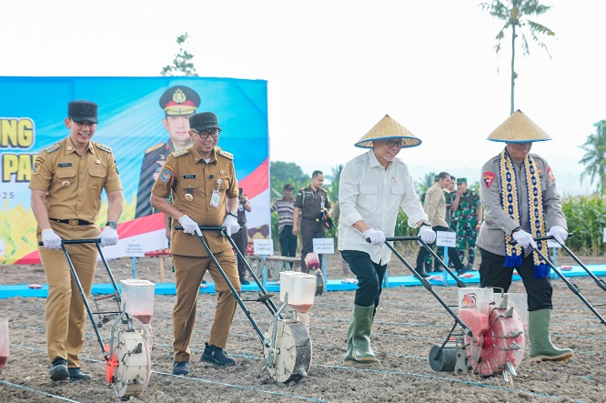 Gubernur Dampingi Menko Pangan dan Wakapolri Lakukan Penanaman Jagung di Lampung Selatan