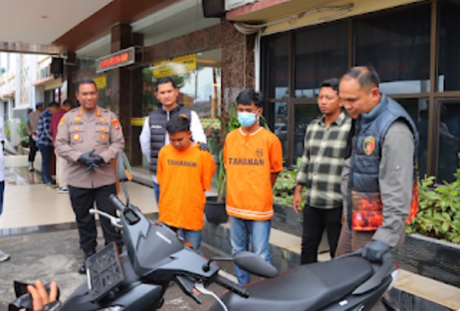 Kedua pelaku berhasil diringkus petugas sesaat akan melakukan aksi pencurian kendaraan bermotor di Klinik Lentera Waluya, Jalan Urip Sumoharjo, pada Rabu (3/12/2025) siang.