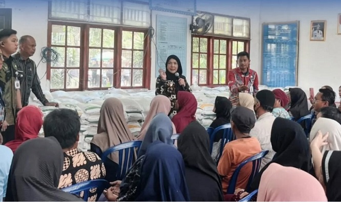 Newslampungterkini.com – Walikota Bandar Lampung, Hj. Eva Dwiana, menyerahkan bantuan pangan berupa Beras dan Minyak kepada penerima manfaat di Kelurahan Panjang Selatan, Kecamatan Panjang, Kota Bandar Lampung, Jum’at (5/12/2025).