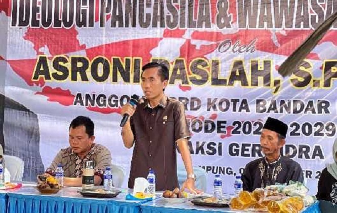 Newslampungterkini.com – Ketua Komisi IV DPRD Kota Bandar Lampung, Asroni Paslah, S.Pd., M.M., menegaskan pentingnya memperkuat kembali wawasan kebangsaan dan pembinaan ideologi Pancasila di tengah derasnya perkembangan teknologi.