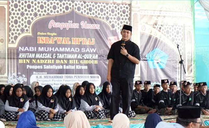 Dalam sambutannya, Bupati Egi menyampaikan apresiasi kepada para pengasuh pondok pesantren dan seluruh masyarakat yang terlibat dalam penyelenggaraan kegiatan tersebut.