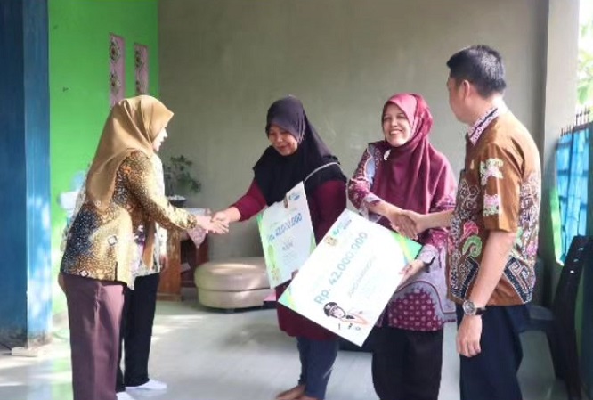 Newslampungterkini.com – Penyerahan santunan perlindungan pekerja melalui BPJS Ketenagakerjaan kepada Joko Marnoto dan Rustini di Perumahan Prasanti, Kecamatan Sukarame, Bandar Lampung (6/2/2026).