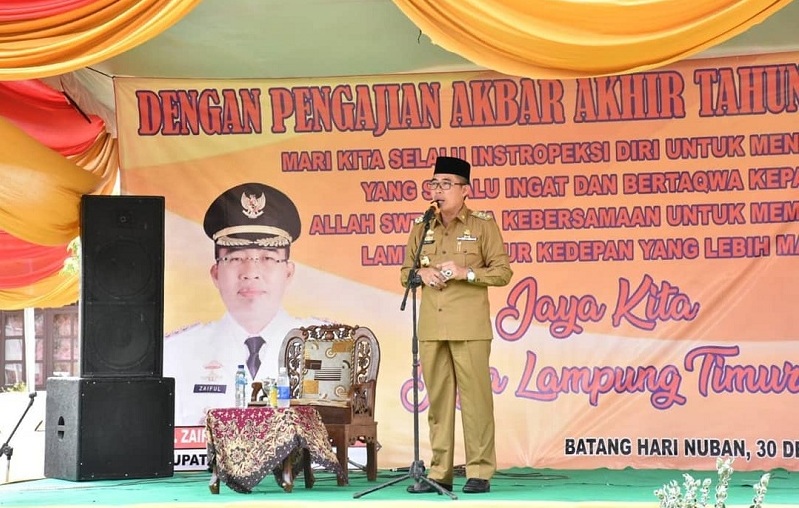 Menanggapi apa yang telah disampaikan sebelumnya, selaku orang nomor satu di Bumei Tuwah Bepadan Hi. Zaiful Bokhari menyampaikan, Alhamdulillah syukur dipenghujung tahun 2019 Pemerintah Lampung Timur beserta jajaran dan bersama masyarakat melaksanakan pengajian dalam rangka refrensi akhir tahun.