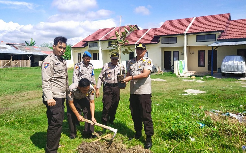 “Tanaman hijau yang kami tanam bertujuan untuk penyerapan air apabila terjadi banjir di kemudian hari, sekaligus untuk penghijauan dan memperindah lingkungan menjadi asri. Semoga tanaman ini bisa berguna di kemudian hari nantinya,” ujar Kapolsek.