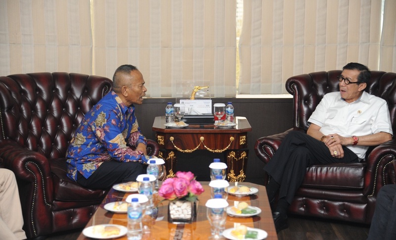 Dalam pertemuan yang berlangsung hangat di Kantor Kemenkumham di kawasan Kuningan Jakarta Selatan, Menteri Yasonna di dampingi Kepala Biro Humas, Hukum dan Kerjasama Sekretariat Jenderal Kementerian Hukum dan HAM, Bambang Wiyono.