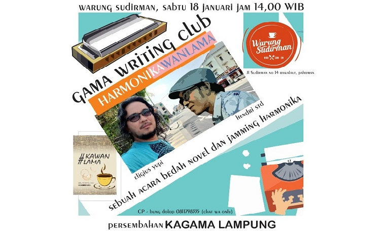 Newslampungterkini.com, Bandarlampung – Pengurus Keluarga Alumni Gajah Mada Provinsi Lampung kembali merilis kegiatan yang ditaja oleh Gama Writing Club. Edisi Sabtu 18 Januari 2020 kali ini diberi tajuk “HARMONIKAWANLAMA”. Acara digelar di Warung Sudirman, Jl Sudirman No 14, Rawalaut, Pahoman start pukul 14.00 WIB.