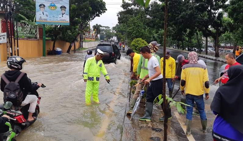 Selanjutnya melakukan upaya pembongkaran median jalan sementara bersama dinas PU kota Bandar Lampung agar aliran air yang tergenang tersalurkan sehingga jalan yang tergenang dapat dilintasi kendaraan. (Bbg/Ag)