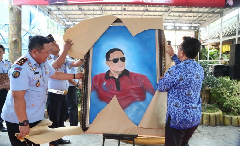 Pisah Sambut Kalapas Kalianda, Endang Beri Hadiah Lukisan Untuk Nanang