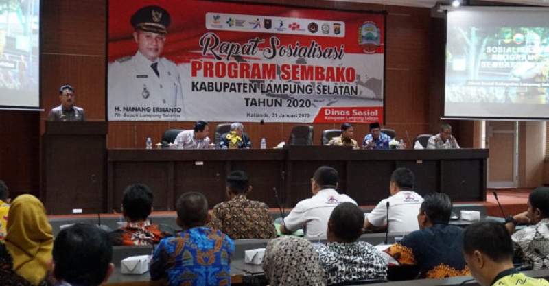 Newslampungterkini.com, Lampung Selatan – Pemerintah Kabupaten (Pemkab) Lampung Selatan melalui Dinas Sosial menggelar rapat sekaligus sosialisasi Program Sembako tahun 2020, di Aula Rajabasa, kompleks kantor bupati setempat, Jumat (31/1/2020).