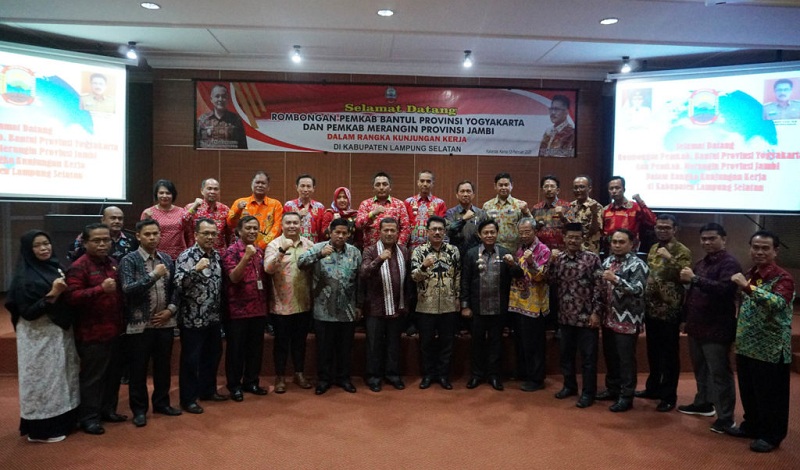 Kedatangan rombongan Pemkab Bantul dan Pemkab Merangin diterima langsung Penjabat (Pj) Sekretaris Daerah (Sekda) Kabupaten Lampung Selatan, Thamrin, S.Sos, MM di Aula Rajabasa, komplek kantor bupati Lampung Selatan, Kamis (13/2/2020).