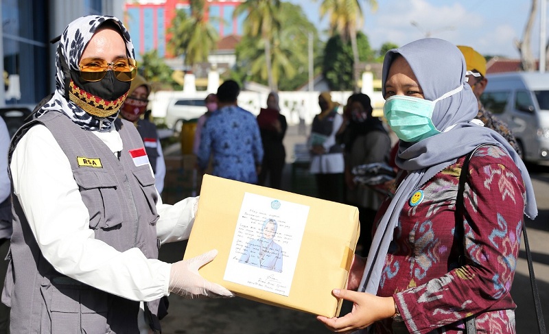Bantuan yang diberikan berupa 5.600 masker, 50 Alat Pelindung Diri (APD), 22 unit Wastafel Portabel, 90 liter handsanitizer, 100 nasi kotak serta sejumlah paket sembako dan perlengkapan kesehatan.