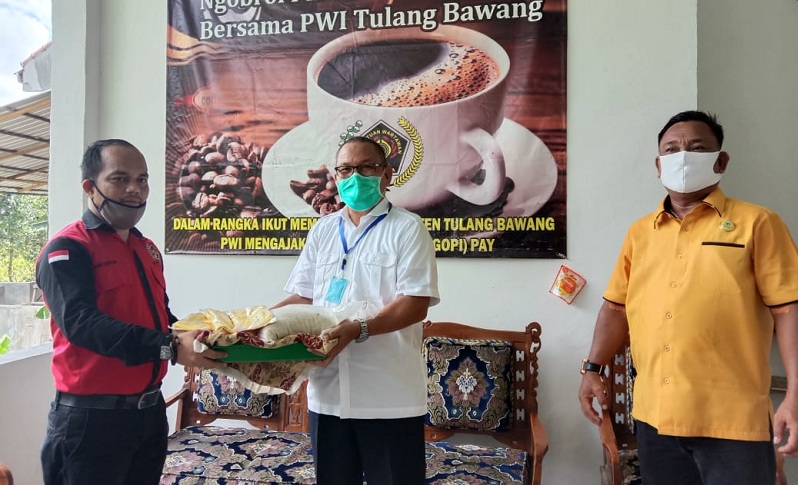 Dalam kunjungan Anggota DPR RI Hanan A Rozak, memberikan masker dan beras, untuk anggota PWI yangbhadir pada acara donor darah tersebut.