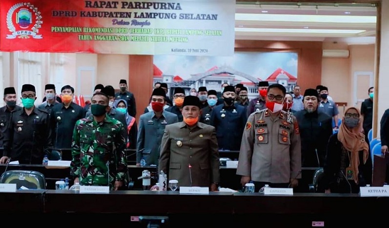 Rapat paripurna yang digelar dengan tetap menerapkan protokol kesehatan itu, dalam rangka Penyampaian Rekomendasi DPRD atas Laporan Keterangan Pertanggungjawaban (LKPJ) Bupati Lampung Selatan terkait program dan kegiatan pembangunan tahun anggaran (TA) 2019.