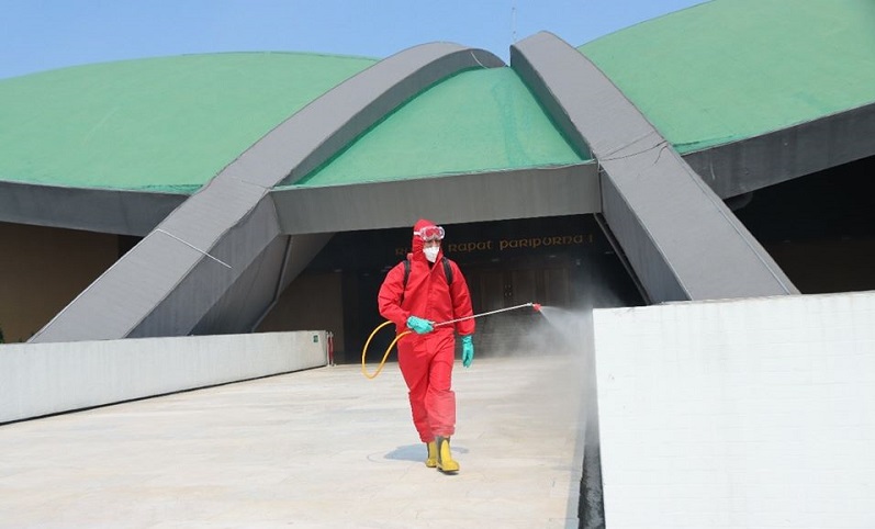 Newslampungterkini.com – Menjelang pembukaan Masa Persidangan IV DPR RI Tahun Sidang 2019-2020 pada pekan depan, seluruh area Kompleks Parlemen, Senayan, Jakarta, disemprot disinfektan.