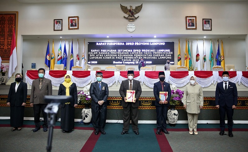 Penyerahan dokumen WTP dilakukan oleh Kepala Perwakilan BPK Provinsi Lampung Hari Wiwoho kepada Gubernur Lampung Arinal Djunaidi dan Ketua DPRD Provinsi Lampung Mingrum Gumay, pada Rapat Paripurna Istimewa DPRD Provinsi Lampung dalam rangka penyerahan Laporan Hasil Pemeriksaan (LHP) BPK atas LKPD dan laporan kinerja pada Pemerintah Provinsi Lampung Tahun 2019 di Ruang Sidang DPRD Provinsi Lampung, Senin (15/6/2020).
